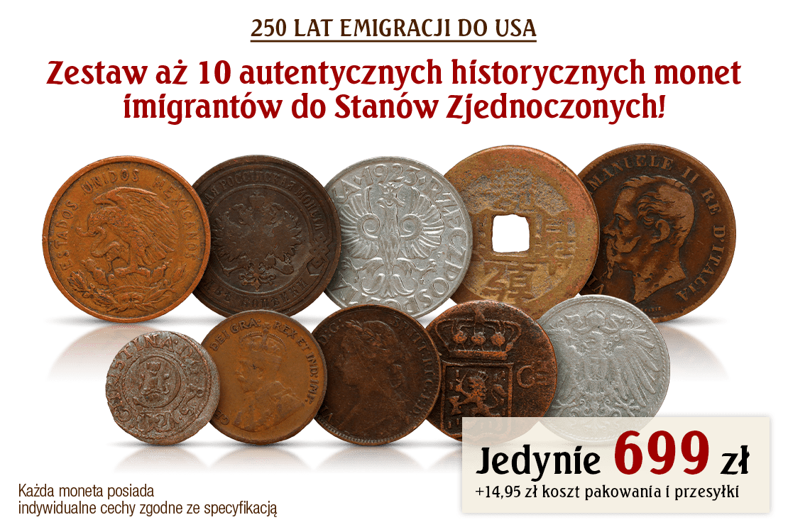 250 lat emigracji do USA - zestaw aż 10 monet historycznych!