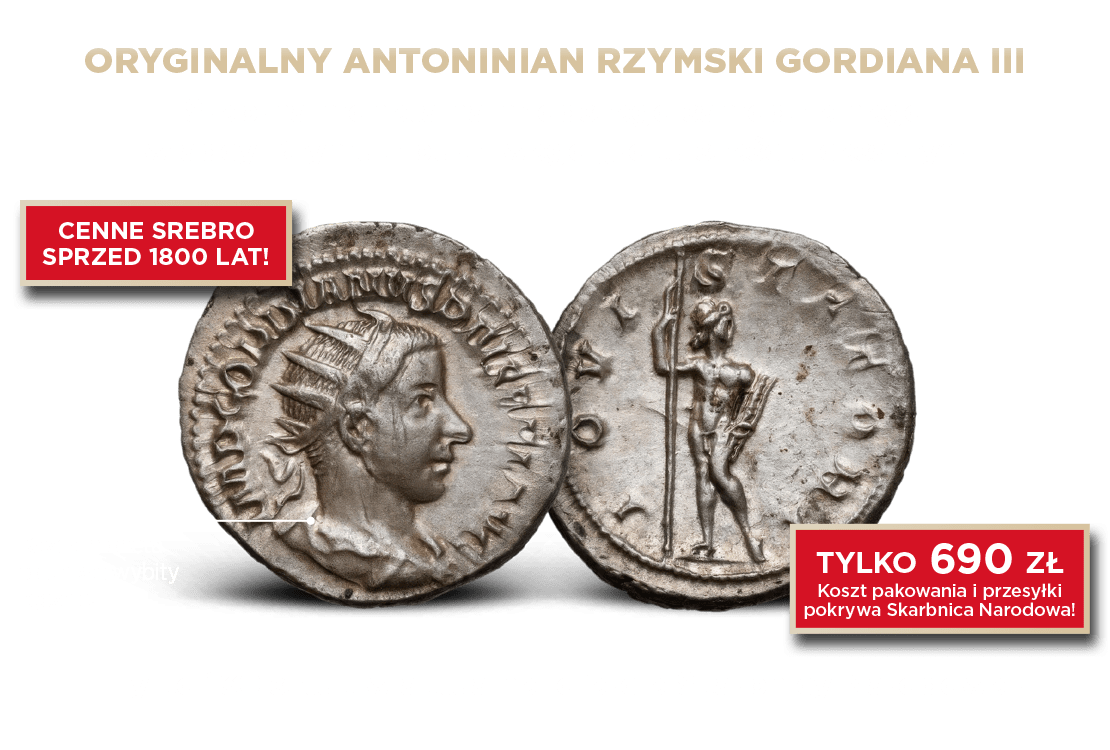Tak, zamawiam oryginalnego srebrnego antoniniana cesarza Gordiana III w cenie jedynie 690 zł (koszt pakowania i przesyłki - GRATIS). Zamówienie obejmuje tylko opisaną monetę. Dostawa odbędzie się najpóźniej w ciągu 30 dni od daty przyjęcia oferty. Numizmat zostanie wysłany w bardzo pięknym stanie zachowania.