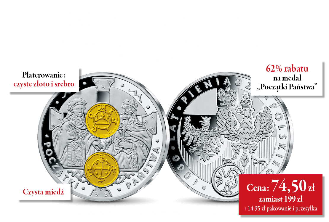 Teraz medal "Początki Państwa" jest dostępny z rabatem wynoszącym aż 62%. Wraz z medalem gratis Certyfikat Autentyczności medalu.