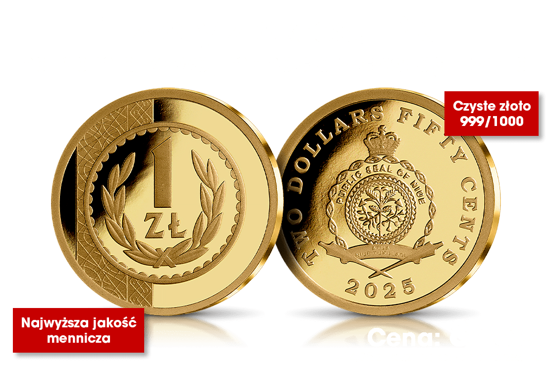 Tak, zamawiam złotą monetę o masie 0,65 g „1 złoty” wraz z Certyfikatem Autentyczności w cenie 845 zł (+ 14,95 zł koszt pakowania i przesyłki). Zamówienie obejmuje tylko opisaną monetę. Dostawa odbędzie się najpóźniej w ciągu 30 dni od daty przyjęcia oferty. Numizmat zostanie wysłany w stanie menniczym.